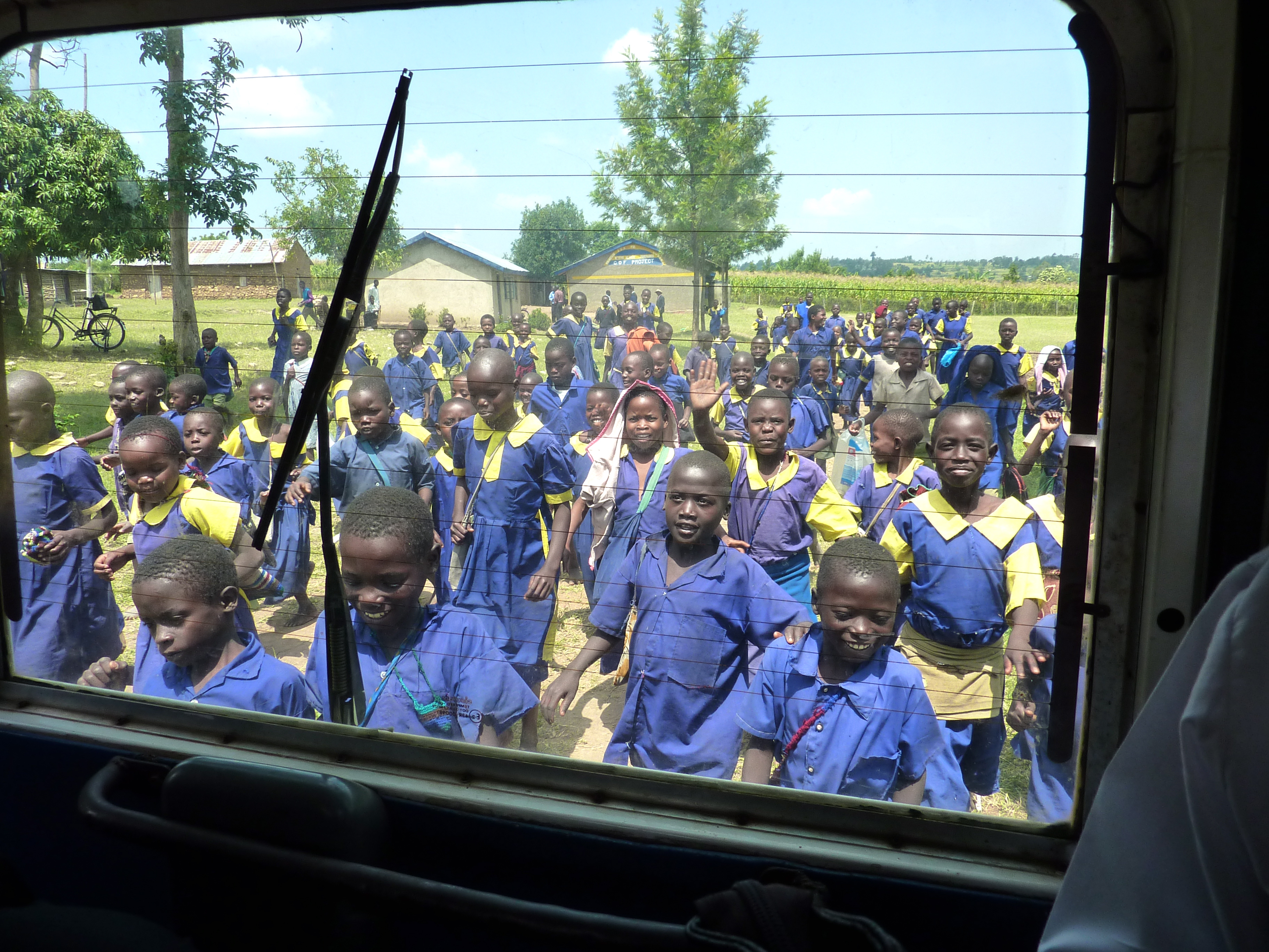 The children were equally enthusiastic to see us. 100+ to a small classroom, 3 or 4 to a bench, with mud floors and walls and dark airless classrooms lit by a hundred smiles as wide as the sea. Keen to learn, they do wonders with next to no resources. They put in a long day, without being fed, and often have to walk several kilometers to school and back. A very high number of them were orphaned by the scourge of Aids. They danced and sang for us, and were highly delighted when we joined in. We spoke to them all under the shade of a large tree and afterwards were overwhelmed by upwards of a thousand small hands wanting to shake ours.