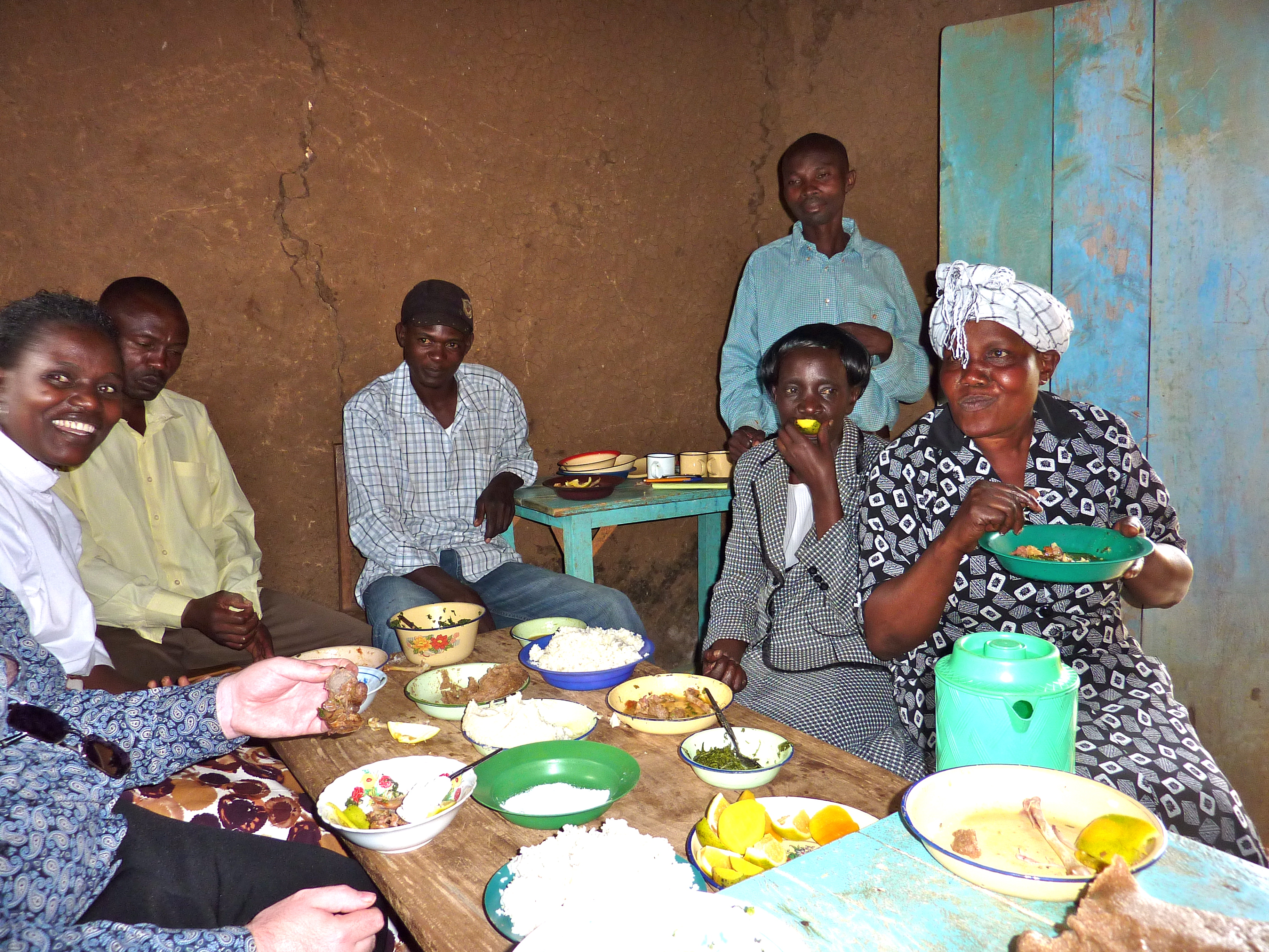 We bumped about the diocese in a land rover that had seen better days 30 years ago. Roads were a bone jolting series of ruts and potholes. However, even the bikes overtook us going uphill! They fed us everywhere. “Do take tea.” and then a table groaning with food. Rice and ugali ( maize meal) to feed a multitude and the inevitable ‘cuckoo’ – chicken. Being veggie I escaped the latter and especially the gizzard, especially reserved for honoured guests. Their bountiful and generous hospitality was the more moving because we knew it was sacrificial. They had very little, but they gave us the best they had.