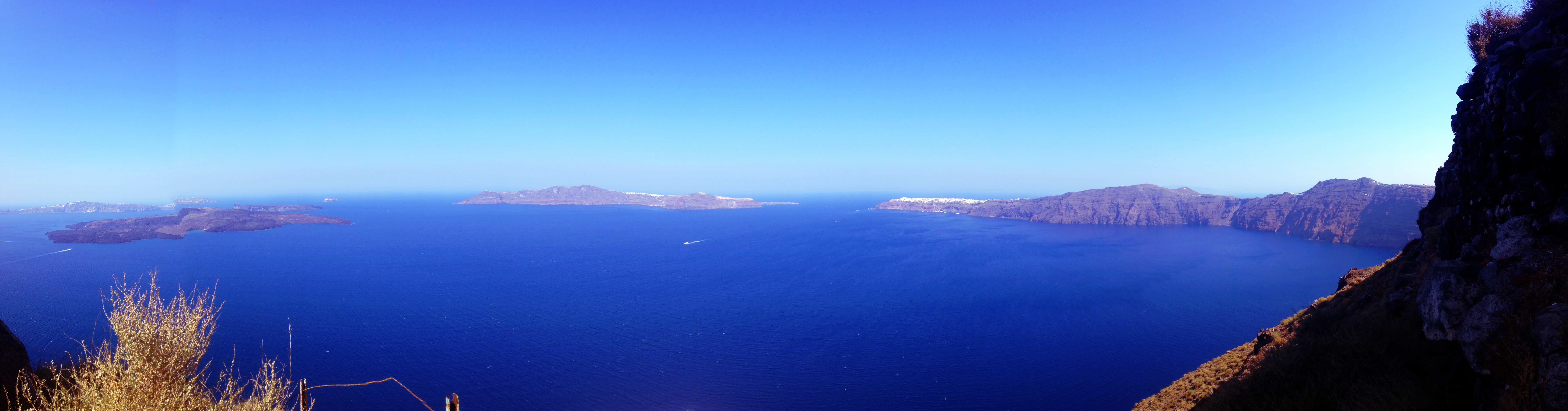 After a series of earthquakes, the volcano blew in a cataclysmic explosion that was off the end of the scale of those in recorded history. The centre of the island collapsed into the depths of the sea, leaving a caldera of 1000 ft high cliffs towering over the Aegean Sea that now fills what was once the heart of a round island.